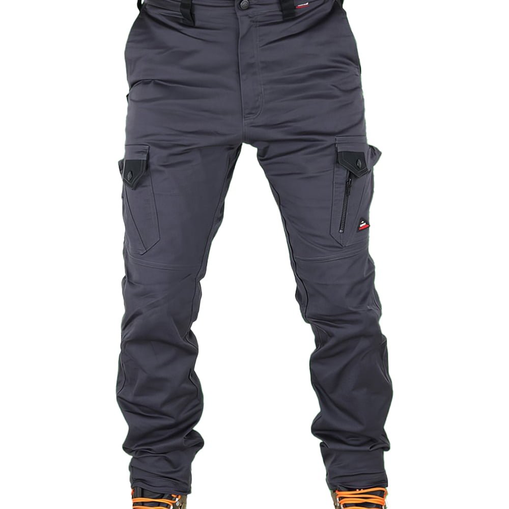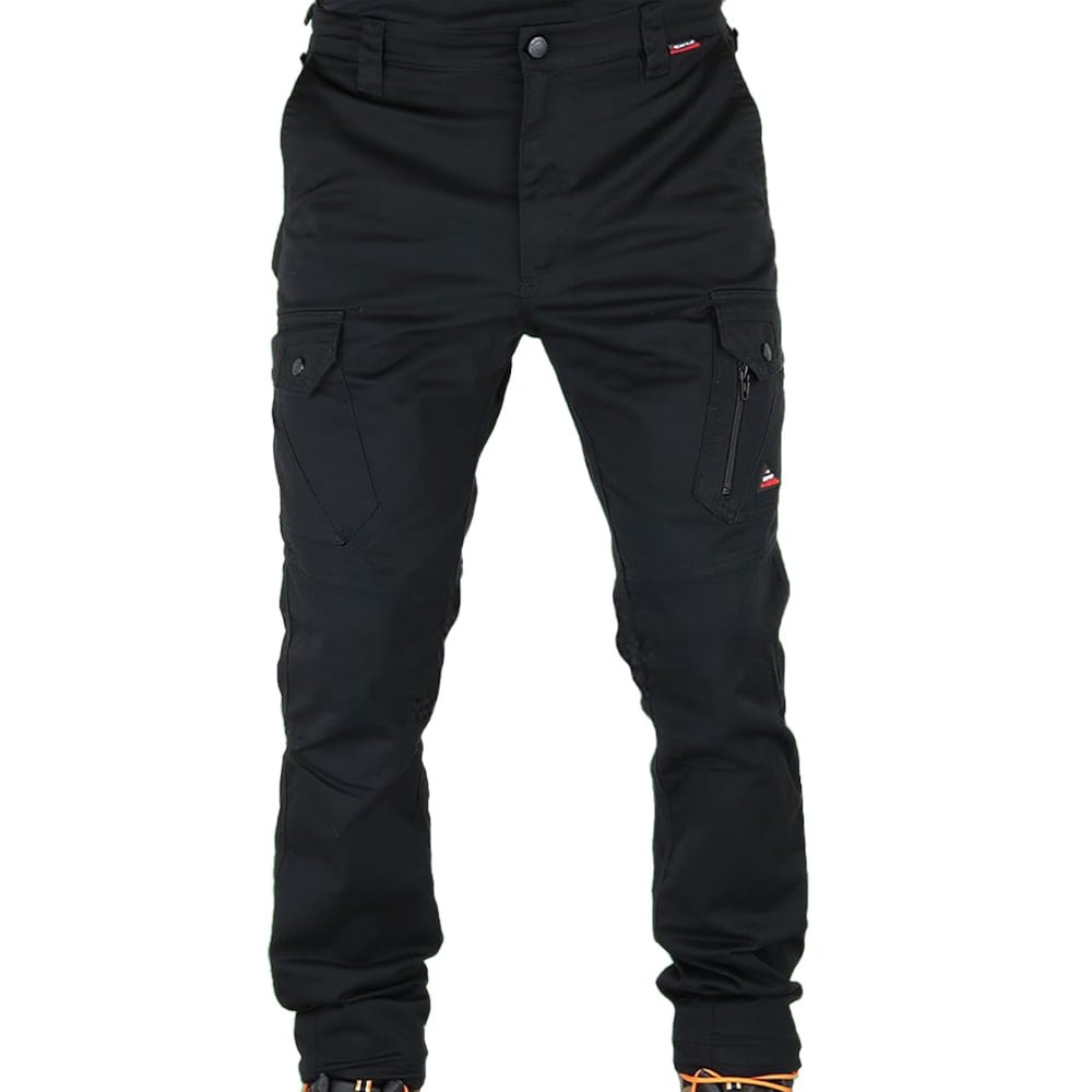 Description: 2 wide front pockets, double back pocket with flap closed with snap, hammer loop, knee and leg ergonomic design, right side pocket closed with snap, left side pocket with double opening (with snap and zip closure), fabric with high elastic perception.