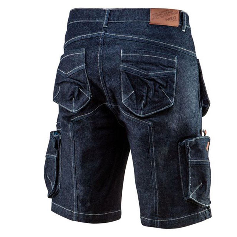 NEO TOOLS WORKWEAR DENIM SHORTS The short shorts from NEO DENIM collection were designed in Poland by NEO clothing technologists, with every detail and style in mind. The shorts are comfortable, fashionable and practical – the addition of elastane ensures a better fit and greater comfort of wear. The workwear quality will be great for everyday wear. Features: multifunctional and capacious pockets, crotch panel increasing comfort, leather logo tags, internal name tag, unique own design, CE certificate for EN ISO 13688:2013.