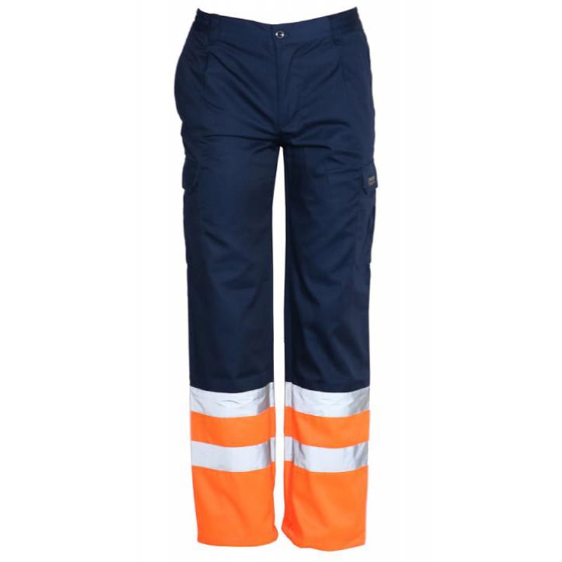 Work trouser with Hi visibility parts and reflective tapes 5cm .It has 2 cargo pockets , 1 back pocket and latex in waist for a better fit.