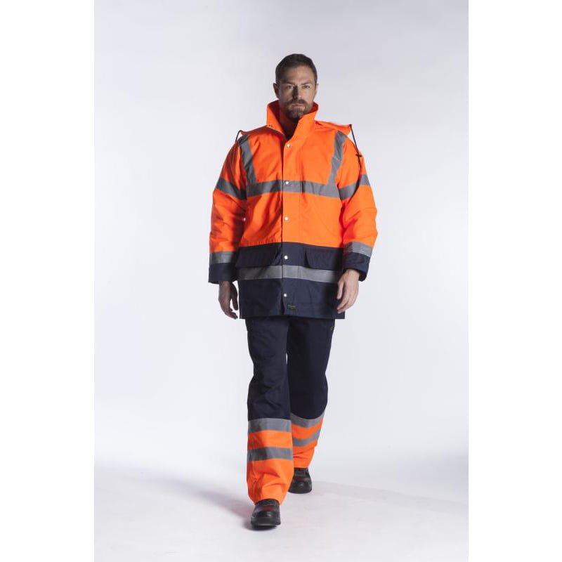FAGEO JACKET PARKA HIGH VISIBILITY Jacket parka water proof Hi visibility with reflective tapes 5cm, with hood, 2 outside pockets