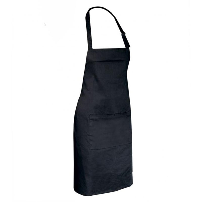 Chest apron with metal buckle on neck cord and double pocket on waist.