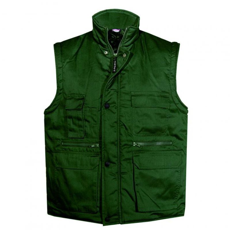 Body warmer with padding, 6 pockets and 2zipper pockets , latex on armholes for air tightness and black front buttons for a perfect fit.