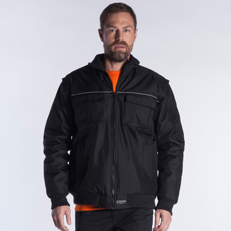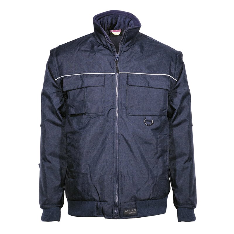 Looking for a rugged waterproof work jacket 609 in Cyprus? This model features a 100% polyester 330 g/m² shell, 420 D Oxford/PVC outer, detachable sleeves, elastic cuffs and hem, and velcro‐closure pockets with reflective strips— designed for professionals who work outdoors and need serious protection, comfort, and versatility all day.